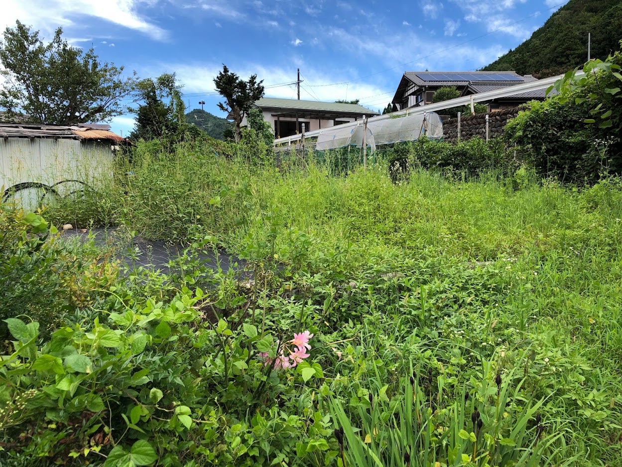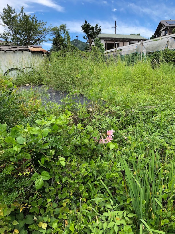 蔵が建っていたこちらの土地。これまでも何度も畑にしようと試みたのですが、石がゴロゴロ出てきて大変すぎて挫折。。。でもすくすくと雑草は育つ。